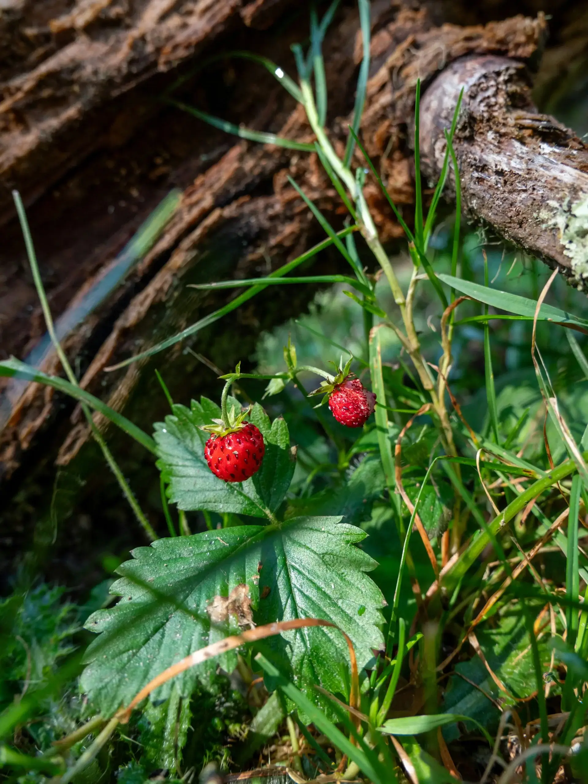 It's early summer. During an evening walk in the woods, I discover small strawberries along the...